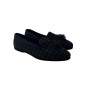 Ces mocassins d’intérieur à motif écossais bleu et vert allient élégance classique et confort raffiné. Leur silhouette fine et structurée, ornée d’un petit pompon en tissu ton sur ton, apporte une touche distinguée à vos moments de détente. L’extérieur en tissu à carreaux évoque un style britannique intemporel, tandis que l’intérieur en velours doux enveloppe le pied d’une agréable sensation de chaleur et de douceur. Leur semelle souple et silencieuse assure une marche confortable, parfaite pour la maison.